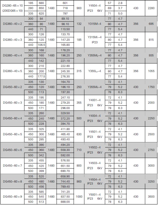 泵過(guò)流部件除200DG43 材質(zhì)為鑄鋼外,其余泵材質(zhì)均為鑄鐵。